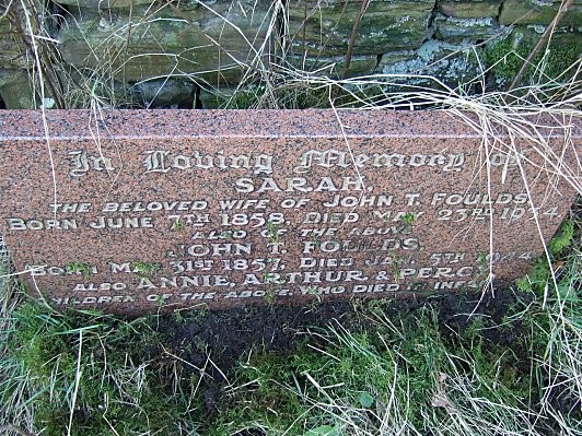 In Loving Memory of Sarah The beloved wife of John T FOULDS Born June 7th 1858, died May 23rd 1934 Also of the above John T FOULDS Born May 31st 1857, died January 5th 1944 Also Annie, Arthur & Percy Children of the above who died in infancy