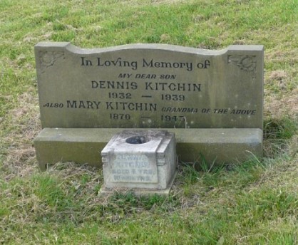 In Loving Memory of My Dear Son Dennis KITCHIN 1932 - 1939 Also Mary KITCHIN Grandma of the abve 1870 - 1943 Dennis KITCHIN Aged 5 yrs 10 months