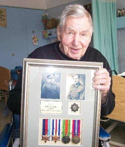 Jack Halstead, 92, contributor to the photo section of this site, has finally received his medals for services in WWII. Despite his humble opinion that he 'was just a cook and didn't deserve a medal', his daughter Sue went ahead and hunted them down. Last week Sue presented the display she had done for a very delighted Jack.