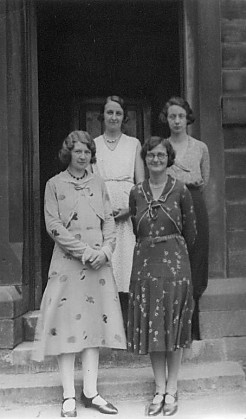 The four teachers at Haggate with my mother (Dorothy Duerden) at front right looking rather pleased with herself, presumable after her appointment as Head. Miss Pickup appears to be at the front left and I don't recognise the two at the back. They are standing at the main door of the School.